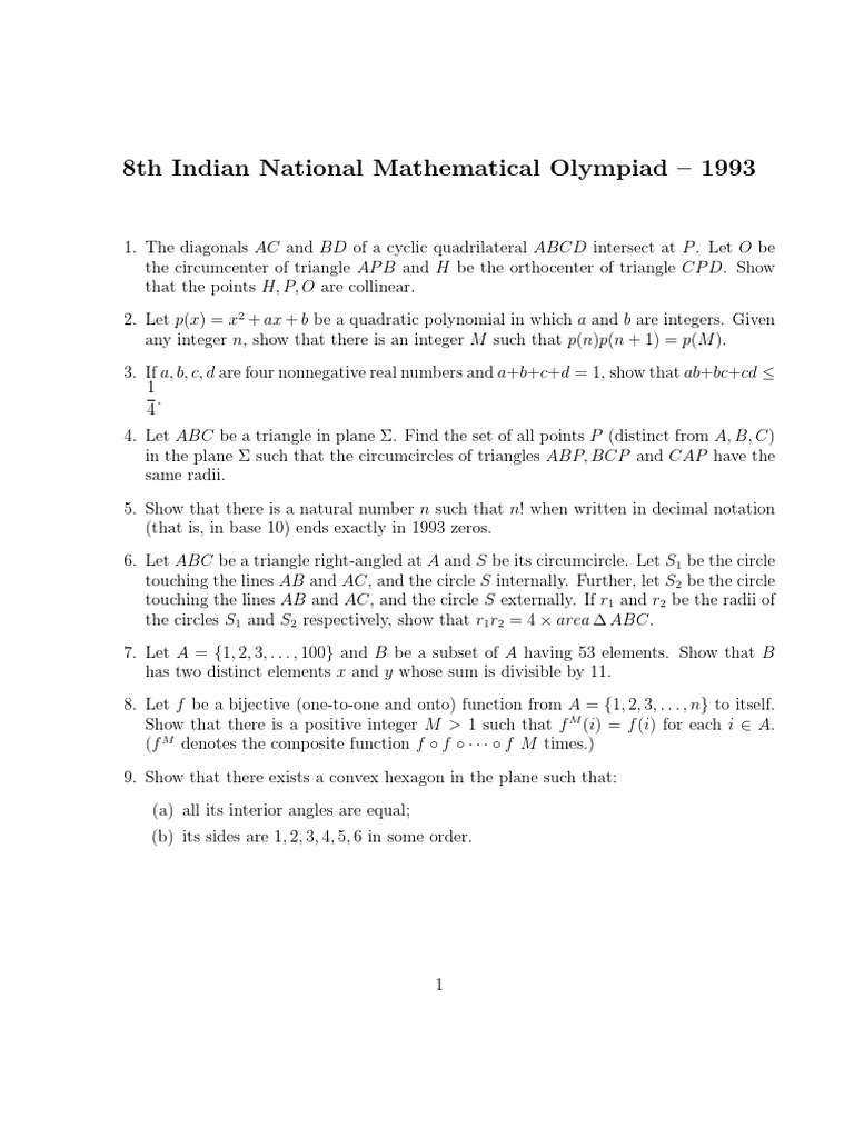 Through inmo exam, around 30 students are qualified from classes 8,9,10, 11 with 6 students from international mathematical olympiad training camp is organised for inmo awardees generally from inm. Limit my search to r/inmo.